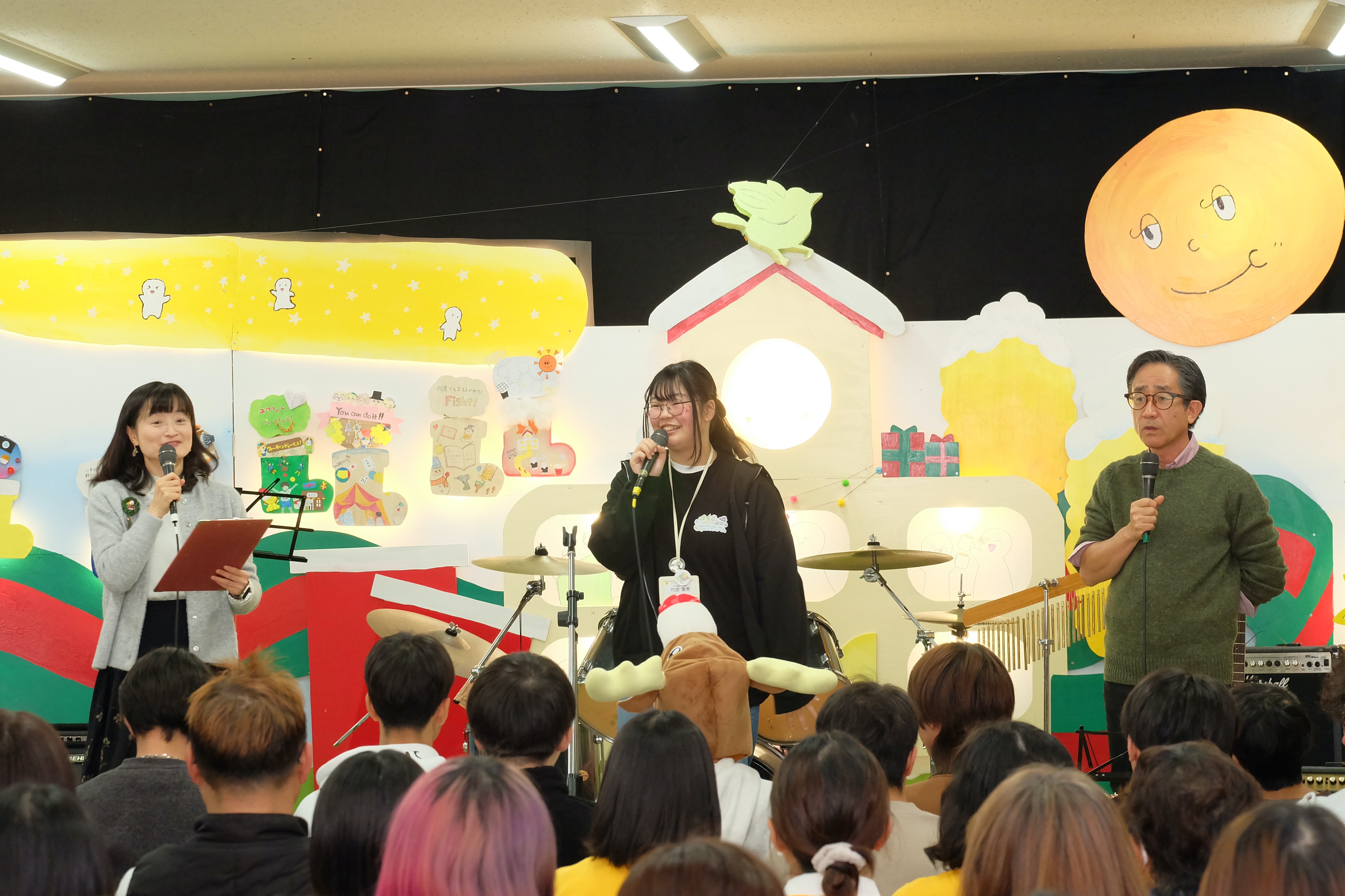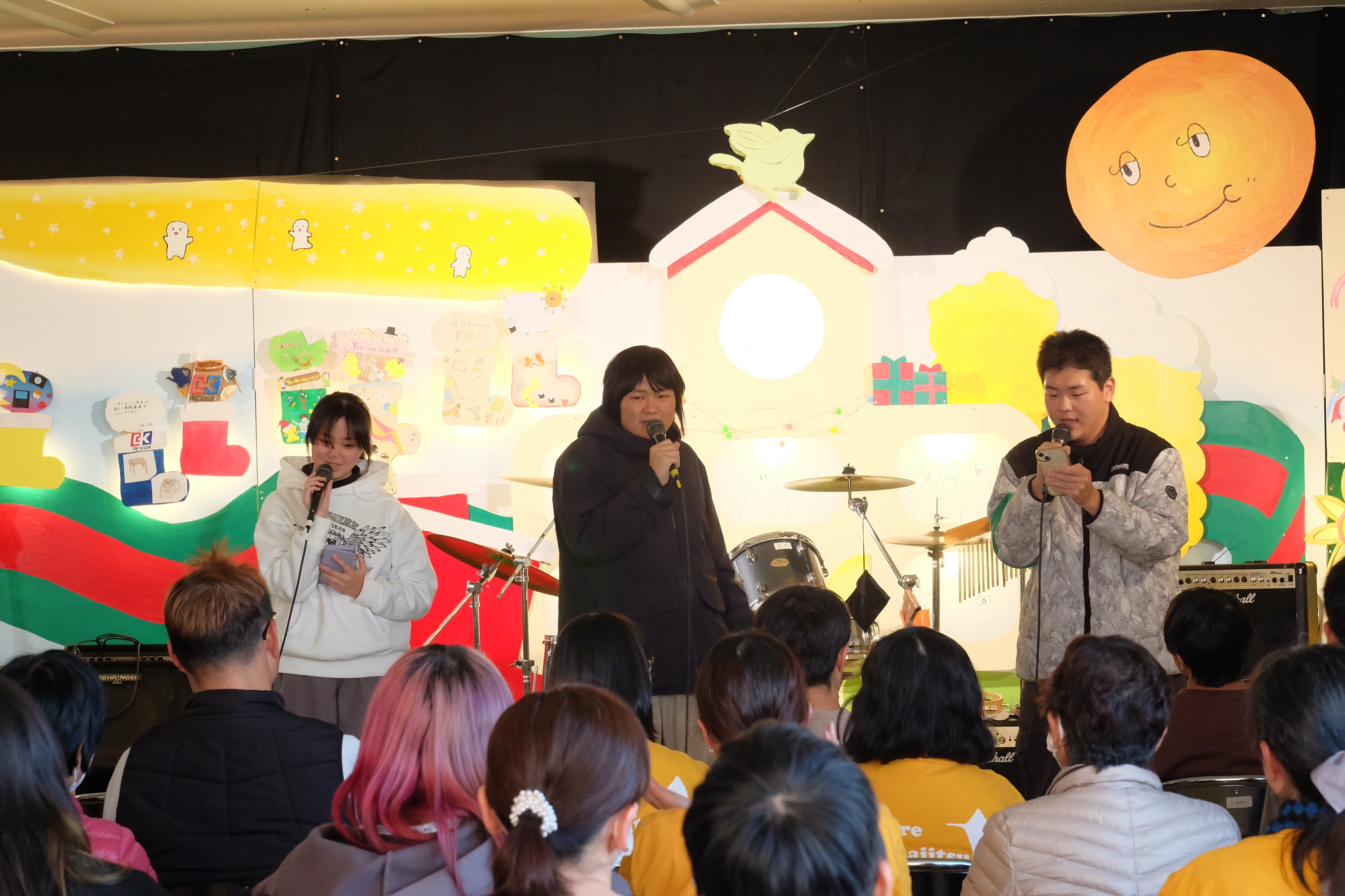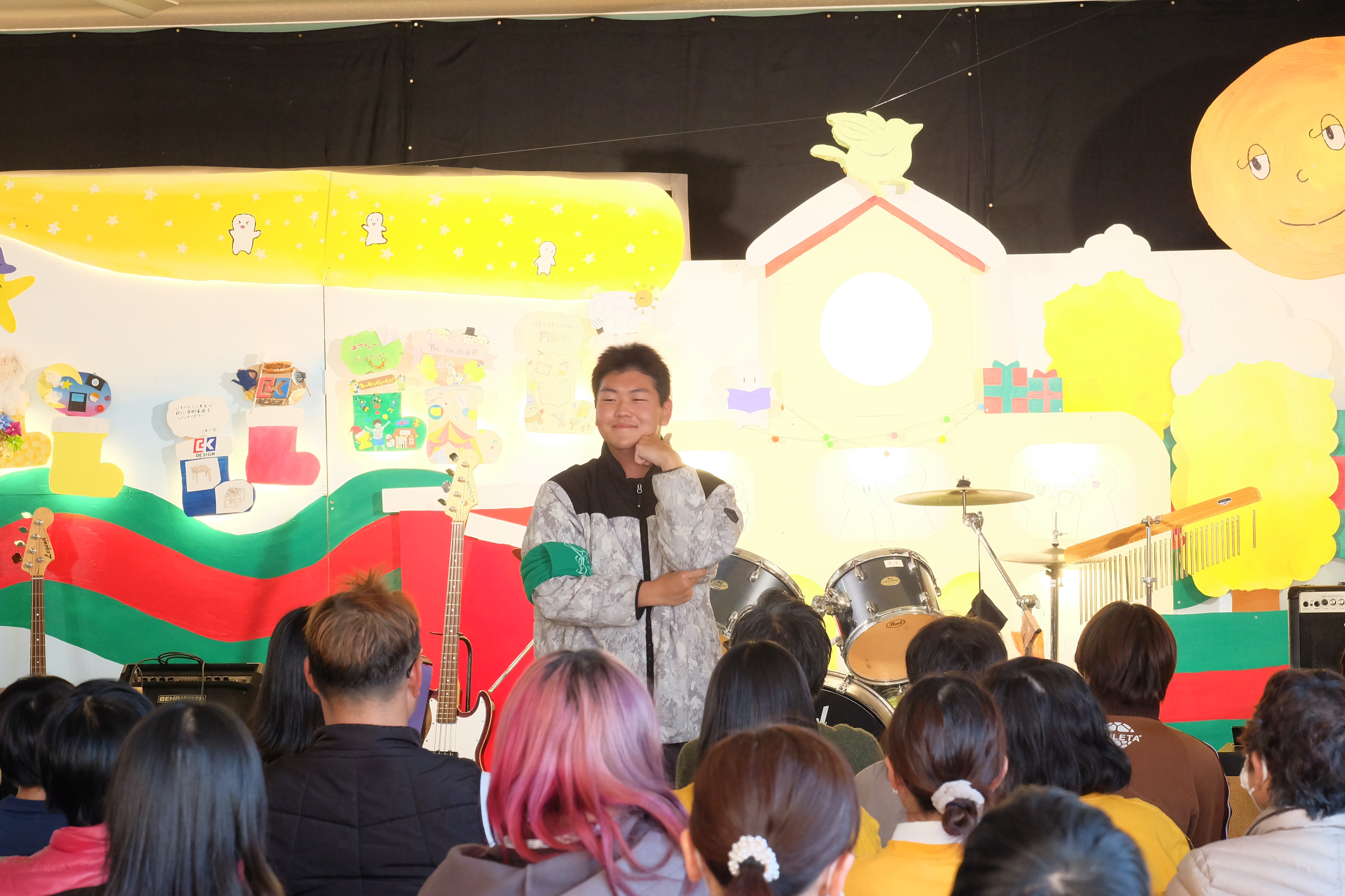 コンサートでは、バンドやダンス、カラオケ、ボディーパーカッションなどがありました。職員や三年生のパフォーマンスは圧巻でした。二年生や一年生も出演を重ねるごとにどんどん上達しています。