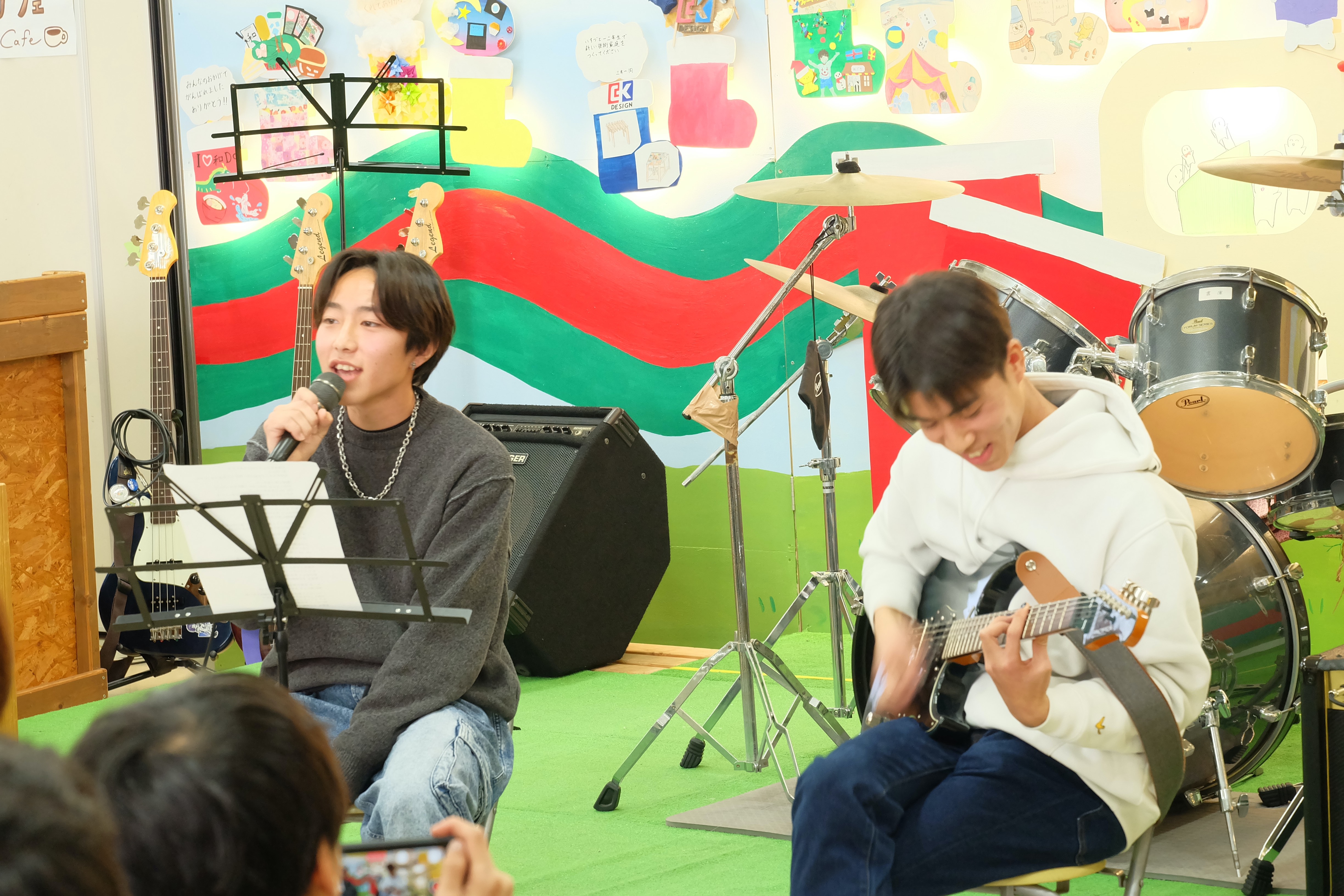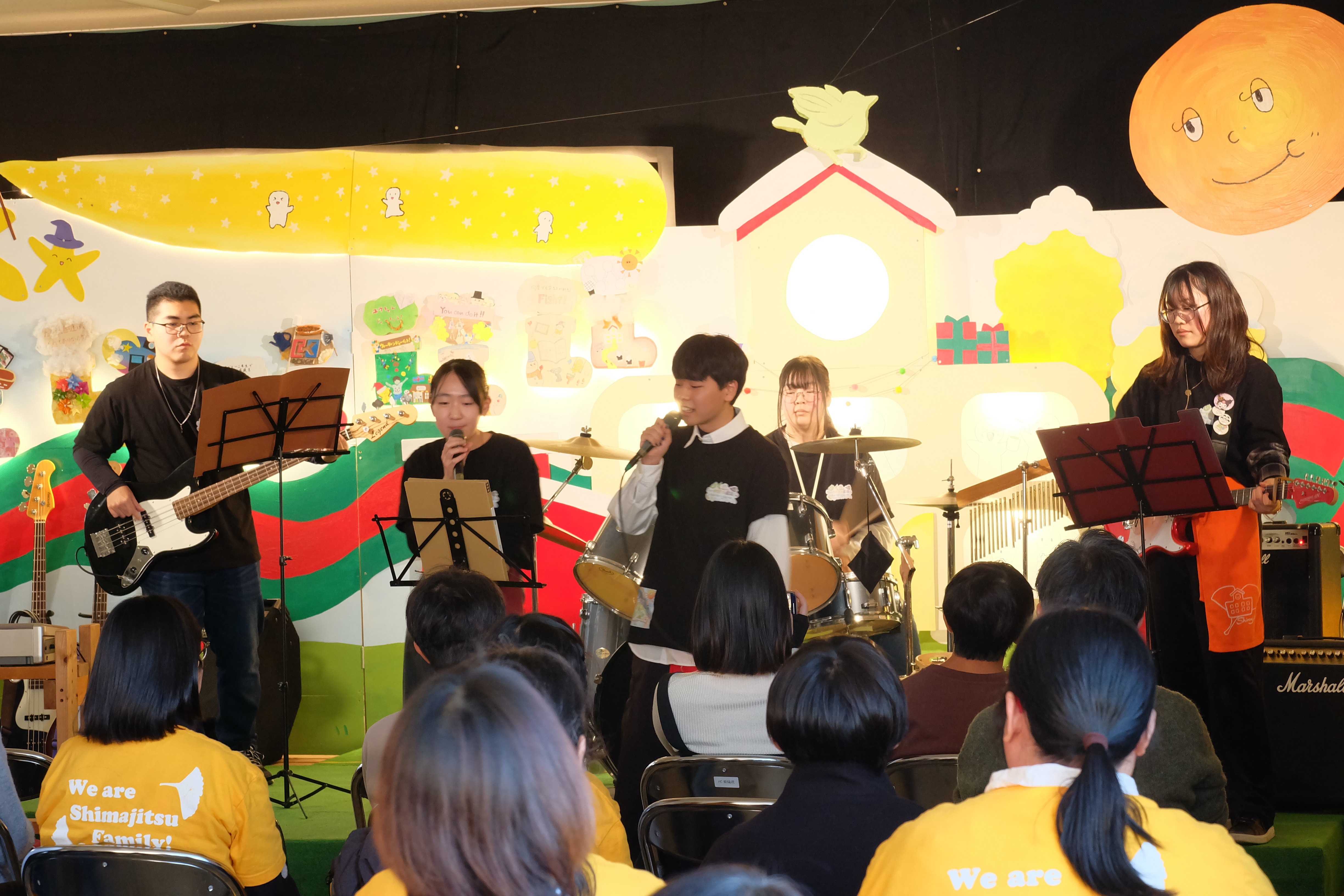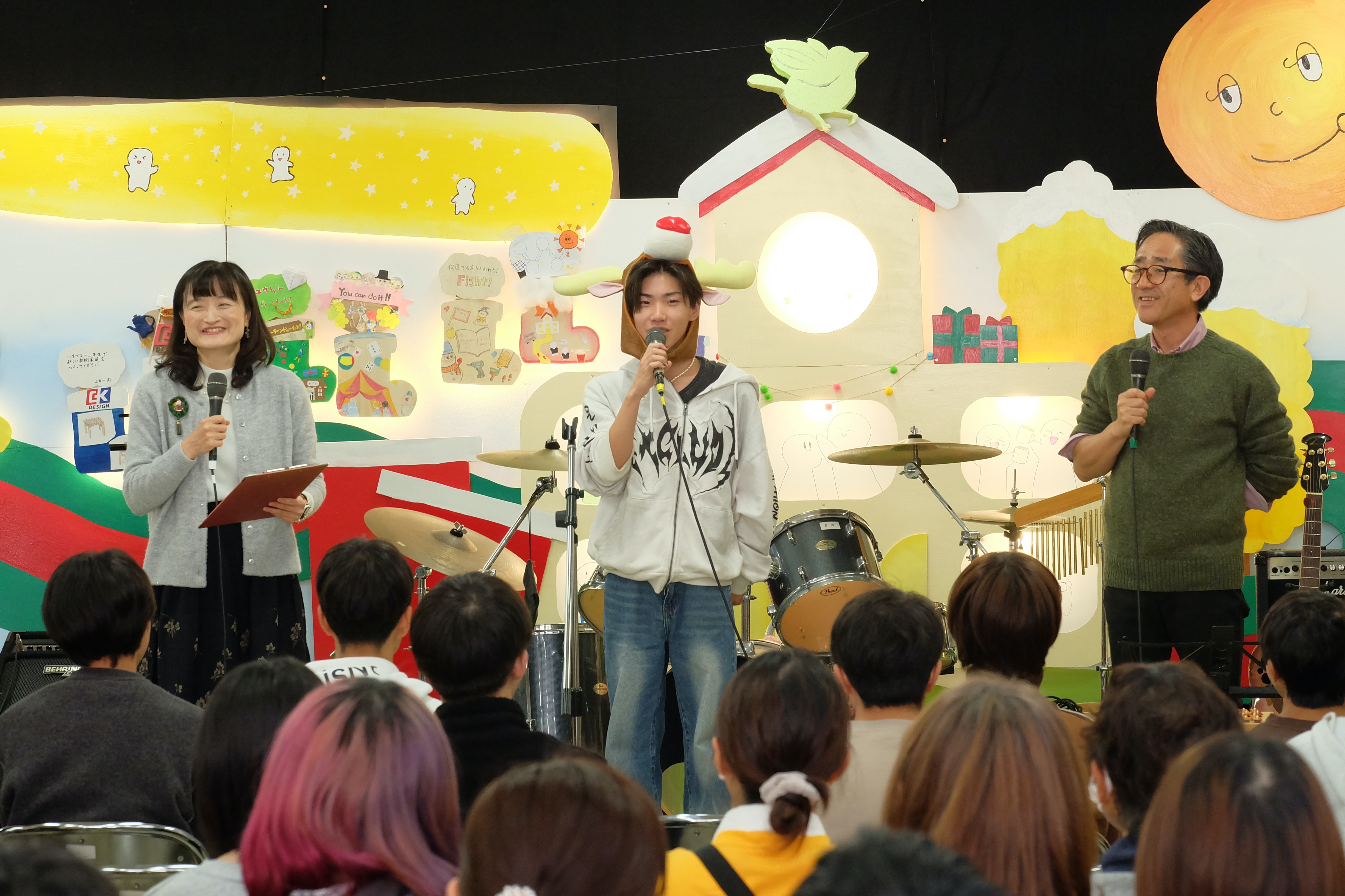 コンサートでは、バンドやダンス、カラオケ、ボディーパーカッションなどがありました。職員や三年生のパフォーマンスは圧巻でした。二年生や一年生も出演を重ねるごとにどんどん上達しています。