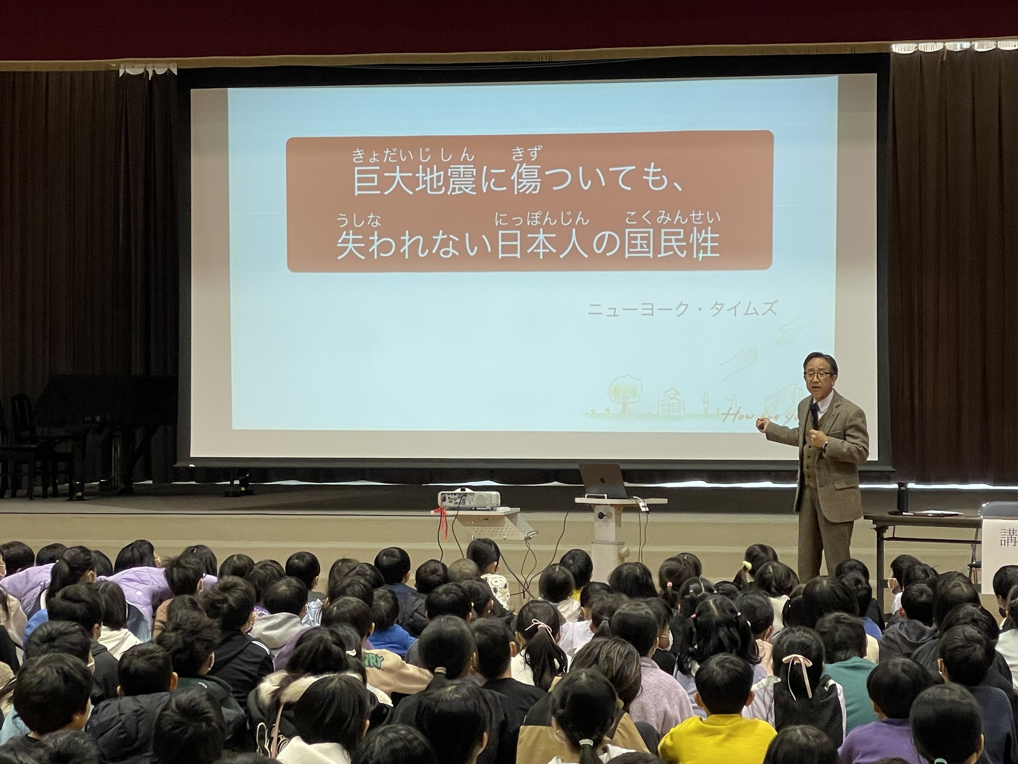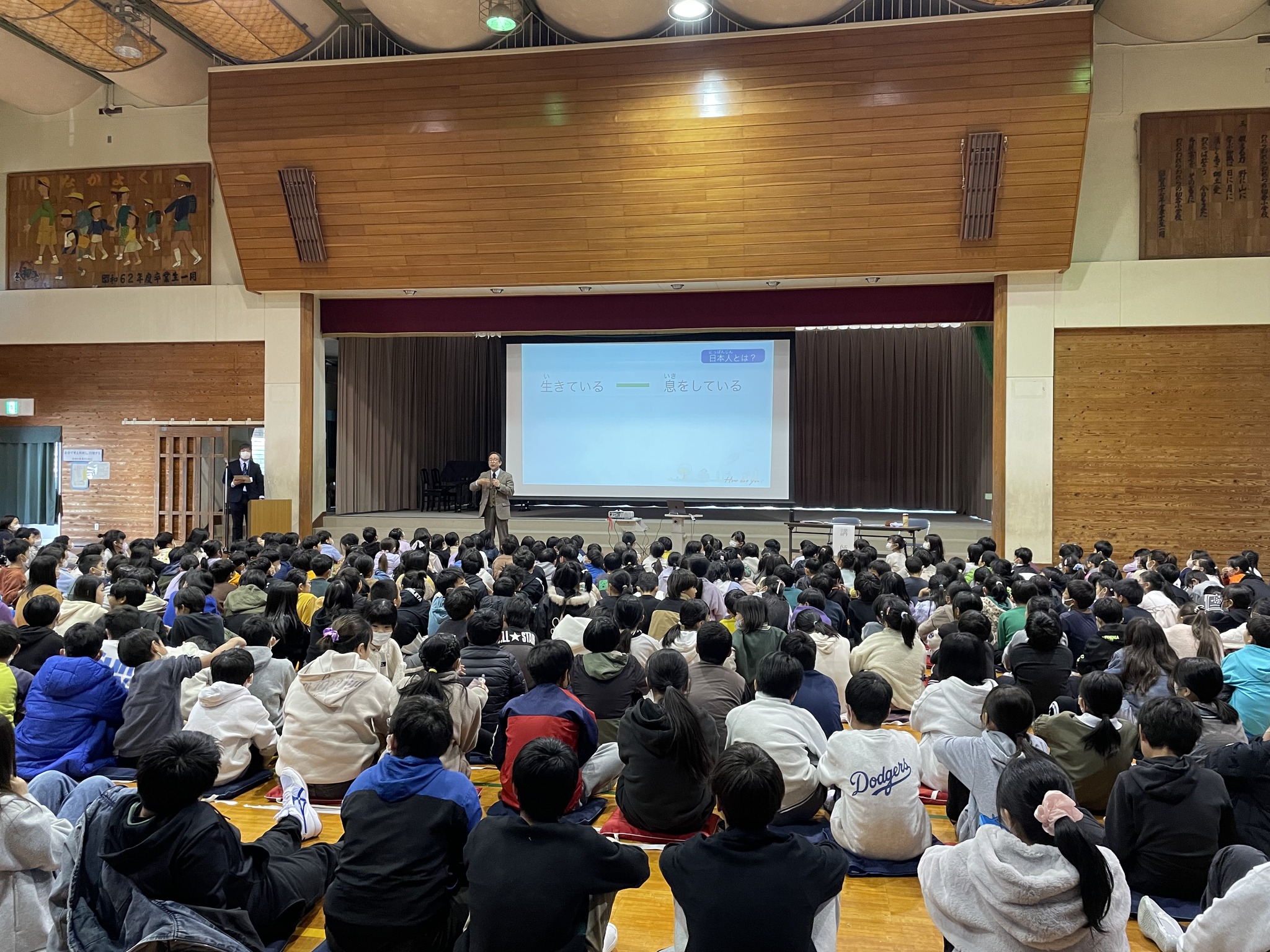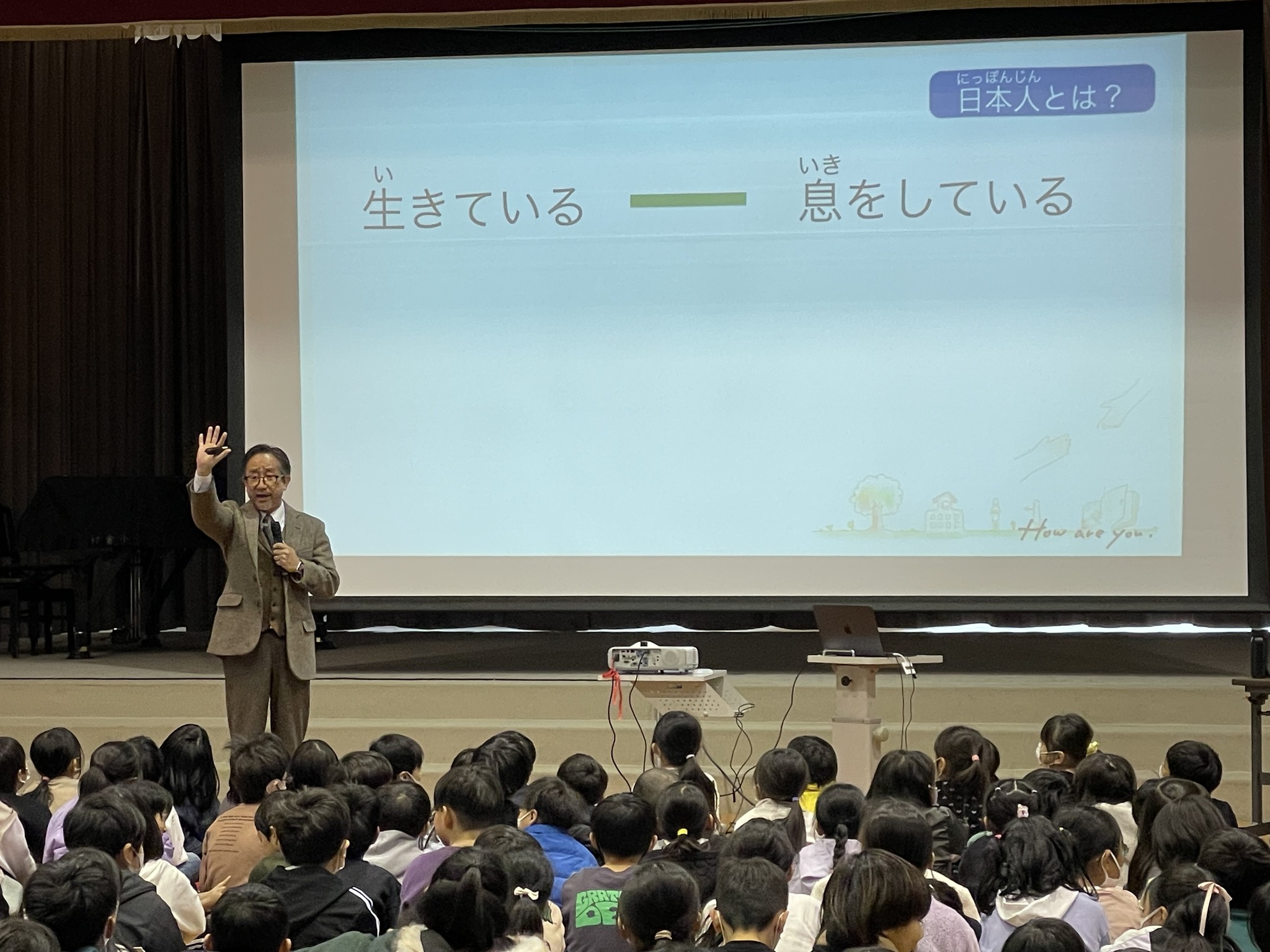 初倉小学校の『夢講座』で講師としてお招きいただき、子どもたちと楽しい学びの時間を過ごしてきました。『大事に生きること』をテーマに、理事長より「挨拶」についてお話ししてきました。日本語の挨拶に込められた意味は、初倉小学校が大事にしている『和気満堂』という言葉とも通じるものがあると感じます。子どもたちは問いかけに対して生き生き反応し、時には手を挙げて発言もできて、活発な印象を受けパワーをもらいました。貴重な機会をいただき大変ありがたく思います。私たちにとっても大変良い経験となりました。これからも様々な場で発信していけたらと考えています。