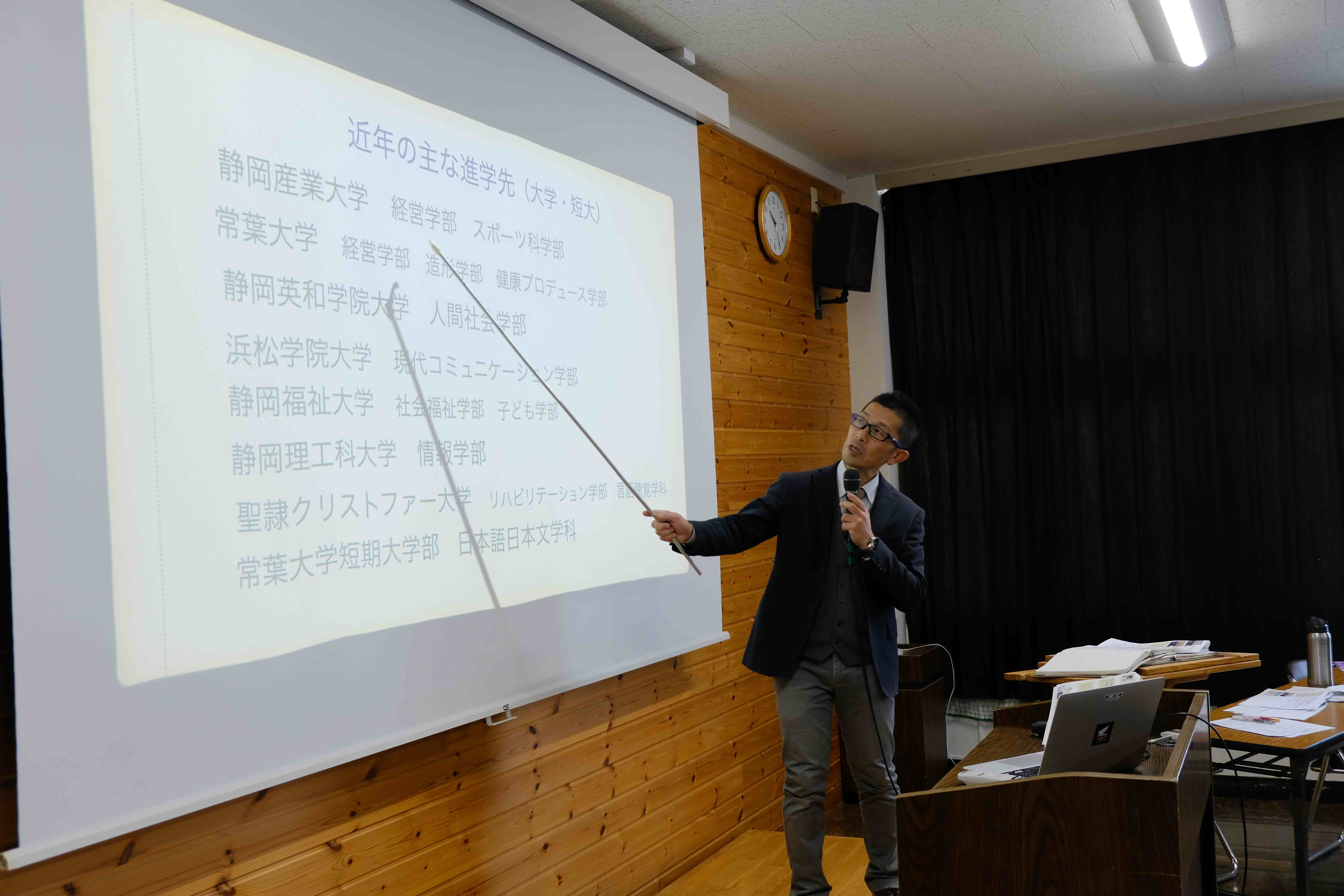 11月21日に、1・2年生は進路説明会で、2年生は講堂に集まり、保護者のうち希望される方々が参加されました。田口先生がスライドを使いながら説明してくれました。